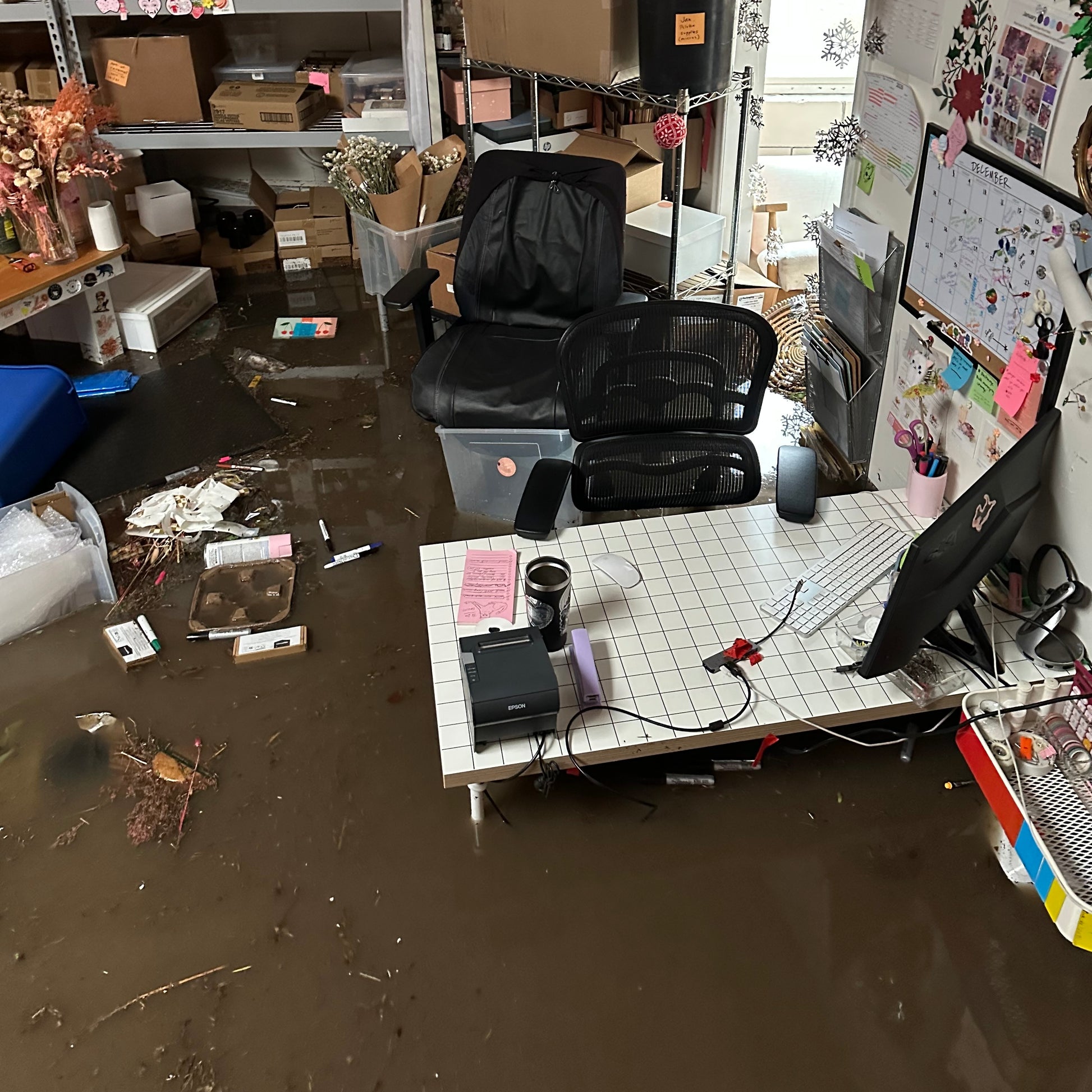 With flood water reaching over three feet high inside our warehouse, much of our merchandise, furniture, electronics, supplies, and our delivery vehicles have been damaged or destroyed.